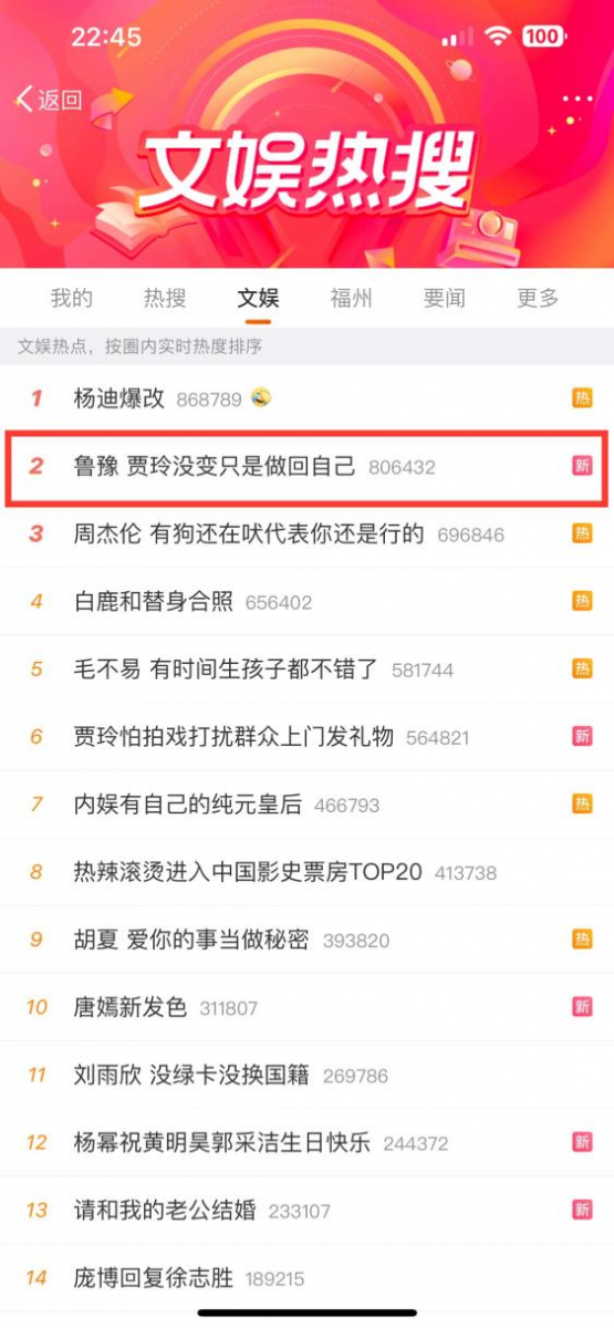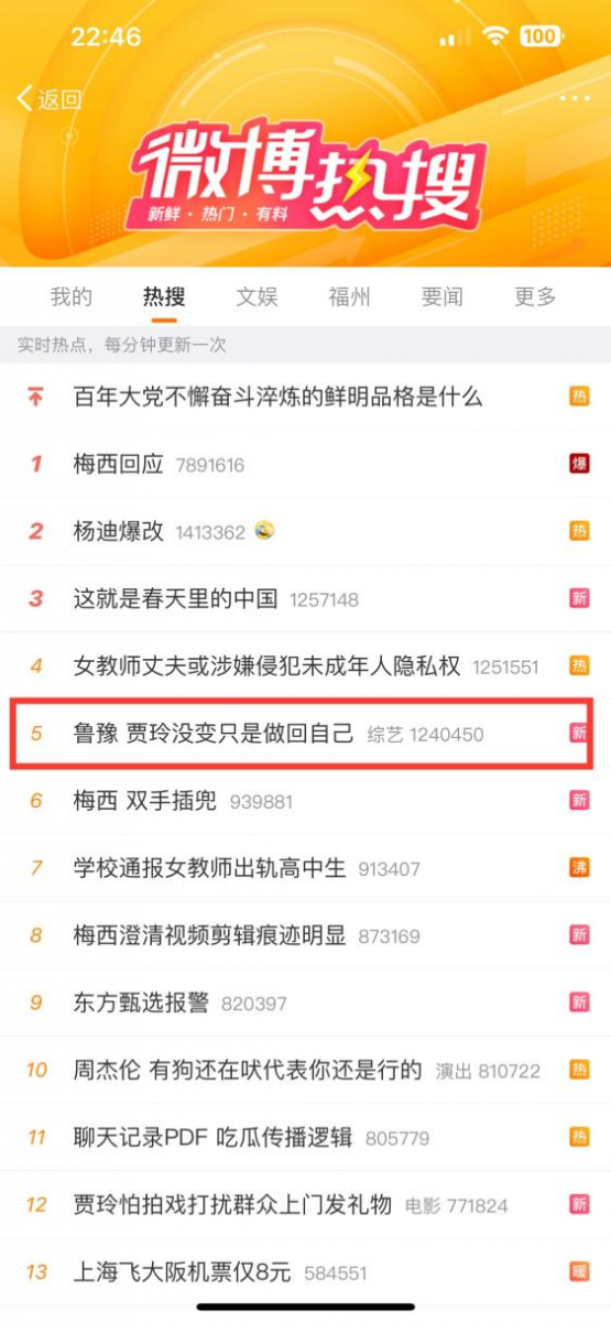 圖:#魯豫 賈玲沒變只是做回自己#話題登上微博熱搜榜