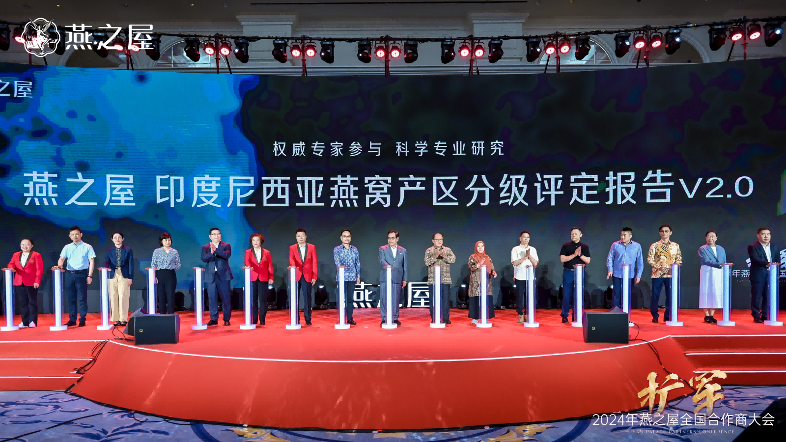 隨后,印度尼西亞駐華大使周浩黎,印度尼西亞動(dòng)植物檢疫標(biāo)準(zhǔn)檢驗(yàn)中心主任斯利揚(yáng)托,廈門(mén)海關(guān)技術(shù)中心、國(guó)家燕窩及燕窩制品檢測(cè)重點(diǎn)實(shí)驗(yàn)室主任徐敦明,印度尼西亞動(dòng)植物檢疫標(biāo)準(zhǔn)檢驗(yàn)中心研究員海爾米,印度尼西亞燕窩協(xié)會(huì)養(yǎng)護(hù)部部長(zhǎng)安東,印度尼西亞燕窩協(xié)會(huì)國(guó)際貿(mào)易部副部長(zhǎng)何文輝,江南大學(xué)未來(lái)食品科學(xué)中心鐘芳教授、陳茂深教授,華南理工大學(xué)食品科學(xué)與工程學(xué)院任嬌艷教授,印度尼西亞027工廠(chǎng)董事長(zhǎng)魯?shù)?,印度尼西?04工廠(chǎng)普爾沃蘇特里斯諾,印度尼西亞014工廠(chǎng)露西亞娜,燕之屋執(zhí)行董事、副董事長(zhǎng)鄭文濱,燕之屋執(zhí)行董事、總裁李有泉,燕之屋董事、副總經(jīng)理、供應(yīng)鏈中心總經(jīng)理黃丹艷,燕之屋副總經(jīng)理、研發(fā)技術(shù)總監(jiān)范群艷,燕之屋供應(yīng)鏈中心總監(jiān)魏溦等領(lǐng)導(dǎo)和嘉賓共同啟動(dòng)發(fā)布《燕之屋印度尼西亞燕窩產(chǎn)區(qū)分級(jí)評(píng)定報(bào)告V2.0》。這標(biāo)志著燕之屋在專(zhuān)業(yè)化、標(biāo)準(zhǔn)化、高質(zhì)量發(fā)展上更進(jìn)一步。
