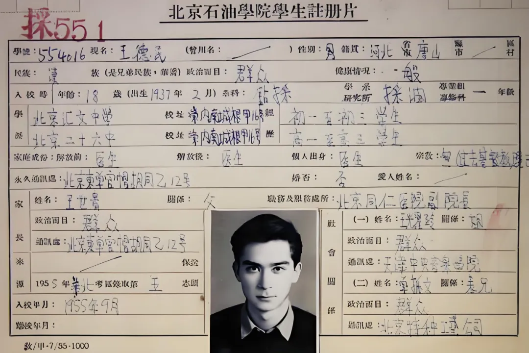 王德民的人生劇本,本與黑漆漆的石油相去甚遠。爺爺是大名鼎鼎的外科圣手,父親自小留美學醫(yī),母親則是一位精通四國語言的瑞士姑娘。但時代所致,中瑞混血的身份,讓他高考時接近滿分,卻被清華、北大拒之門外。好在北京石油學院給了這個年輕人“一線生機”。
