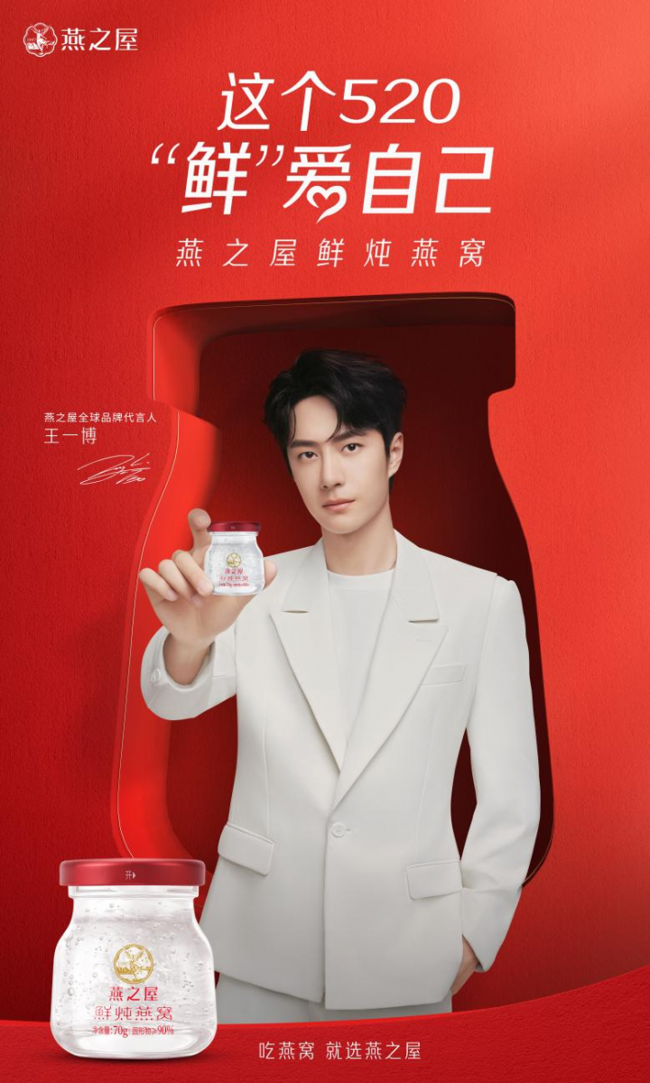 5月20日,燕之屋官宣王一博成為全球品牌代言人,全新品牌代言TVC大片同步釋出,由王一博鮮活開啟燕之屋520“鮮”愛自己計(jì)劃。官宣當(dāng)日,燕之屋與王一博于微博發(fā)布官宣博文,同時(shí)微博上線官宣開屏廣告,話題#王一博燕之屋全球品牌代言人#沖上微博熱搜。