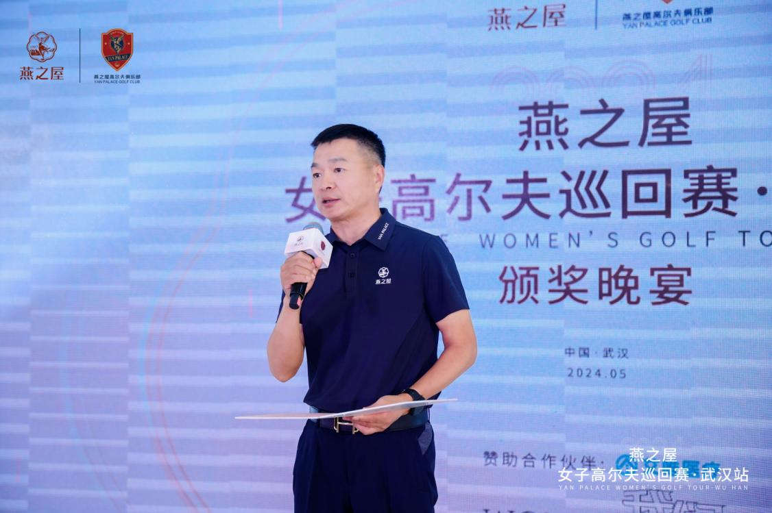 高爾夫既是一項健康、時尚、高雅的運動,更是一種積極向上的生活方式,一場風(fēng)雨中的爭鋒逐鹿,將高爾夫精神展現(xiàn)得淋漓盡致。夜幕降臨,燈影璀璨,2024燕之屋女子高爾夫巡回賽·武漢站頒獎晚宴揭開序幕。燕之屋副董事長、燕之屋高爾夫俱樂部主席鄭文濱在致辭中表示:“今天,各路高手齊聚一堂,逐鹿鏖戰(zhàn),以精湛的球技、堅韌的毅力和出色的發(fā)揮,為我們呈現(xiàn)了一場激動人心的比賽。燕之屋致力于將燕之屋女子高爾夫巡回賽打造成國內(nèi)頂級的賽事IP,同時借助燕之屋高爾夫俱樂部這個平臺,為會員朋友帶來更專業(yè)的高球賽事、更優(yōu)質(zhì)的服務(wù)體驗,增進彼此之間的交流互動。燕之屋將繼續(xù)秉持匠心理念,為高品質(zhì)人士提供優(yōu)質(zhì)的燕窩產(chǎn)品,共同追求美與健康的生活。”